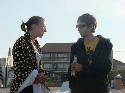 Stateam, ne uitam unii la altii, si zicem “Bai, hai la Cristi!”. Cristi era alt prieten din Pitesti, care lucra la Eforie Nord, intr-un chiosc din asta cu bere de pe plaja. Acolo dormea, acolo manca, acolo tot. De unu’ singur… Il sunam la fiecare betie sa-l intrebam care e temperatura apei. Il sunam si de data asta – omu’ dormea, ne injura bezmetic, noi ii explicam ca suntem in tren, el zice “da, da, bine…hai pa” si inchide. In fine…